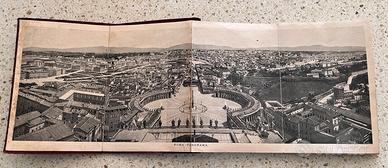 Album in cartonato del secolo scorso, cronolitografia più colori e oro veduta di piazza San Pietro in copertina. Le 32 foto sono in bianco e nero a soffietto con legenda in 4 lingue, mappa della città all’interno della copertina. Dimensioni cm 16,5 x 11,5.