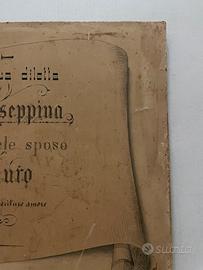 Ricordo matrimoniale originale di fine Ottocento, realizzato intorno al 1891, anno del matrimonio tra Arturo Beck e Giuseppina Gasperini, uniti in matrimonio nella Cattedrale di San Giusto a Trieste.