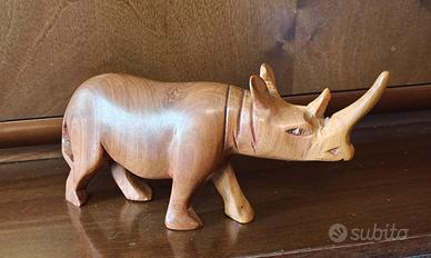 Rinoceronte, scultura legno artigianato africano etnico vintage, anni ‘80