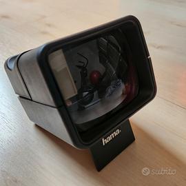 Vendo visore per diapositive Hama "LED" 3x.Consente una visualizzazione facile e veloce delle diapositive con ingrandimento 3x..Adatto a tutte le cornici per diapositive di formato standard 5 x 5cm.È alimentato da 2 batterie AA (Mignon) da 1,5 V. Dotato di lampada di illuminazione.