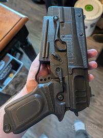 Porta un pezzo del mondo post-apocalittico di Fallout direttamente nella tua collezione con questa riproduzione in scala 1:1 dell'iconico accessorio 10mm! Creata con tecnologia di stampa 3D all'avanguardia, questa riproduzione è un eccezionale accessorio utilizzato dai sopravvissuti nell'universo di Fallout. Ideale per cosplayer, collezionisti e fan della saga.
