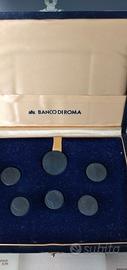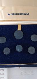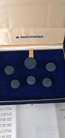 Bellissimo set di riproduzioni di monete romane, risalenti agli anni '70. Il set è conservato in un elegante cofanetto. - 6 monete antiche riprodotte. - In perfette condizioni estetiche. - Cofanetto incluso. RIPRODUZIONE DEGLI ANNI SETTANTA DI 6 MONETE ROMANE CONIATE DALL'ISTITUTO POLIGRAFICO E ZECCA DELLO STATO, PER CONTO DELL' EX BANCO DI ROMA. IL SET E' IN PERFETTE CONDIZIONI E RIPRODUCE GLI ORIGINALI DI MONETE ROMANE DEL III - IV SECOLO D.C., APPARTENENTI ALLE COLLEZIONI DEL MUSEO NAZIONALE ROMANO. E' PRESENTE IL CERTIFICATO DI GARANZIA, COME MOSTRATO NELLE IMMAGINIE. EVENTUALMENTE RITIRO A MANO A PIACENZA O TREVIGLIO (BG). IDEA REGALO PER COLLEZIONISTI. SI VALUTANO SOLO OFFERTE SERIE, NO PERDITEMPO.