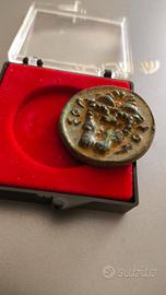 Riproduzione antica moneta greca rappresentante la dea Atena antichizzata in metallo diametro 30mm possibilità di sconto..