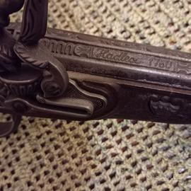 Riproduzione inglese 1760. Finta e non funzionante ovviamente e quindi anche i bambini possono giocarci ma è da collezione A pietra focaia con la molla. Bachelite e ferro. Lunga 38 cm e peso 700 gr. NO SPEDIZIONE