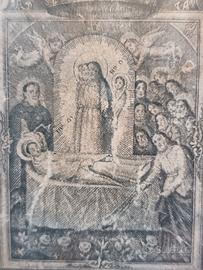 Vendo riproduzione antica dell'icona greco-bizantina dell'Assunzione o Dormizione della Vergine. Stampa della tavoletta di legno di pioppo conservata nel santuario di Montallegro, a Rapallo, in provincia di Genova. Città nella quale Maria è apparsa il 2 luglio 1557. La stampa, incorniciata, ha alcune imperfezioni.