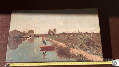 Riproduzione stampa su fondo in legno Guglielmo Ciardi "Mulino sul sile"