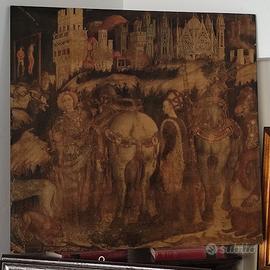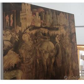 Imponente Riproduzione Pisanello - San Giorgio e la Principessa - 90x95cm Anno: secolo XX Acquisizione: 02-01-2026 Provenienza: privato di Bergamo e dintorni Stato conservativo: eccellente Funzionamento: decorativo lusso Descrizione:Magnifica riproduzione su solida tavola di legno del capolavoro di Pisanello (1433-1438). Il pannello cattura l'essenza del Gotico Internazionale con il celebre dettaglio degli impiccati e le architetture fiabesche di Verona. Un pezzo d'arredo di immenso valore estetico e materico, perfetto per studi professionali o dimore che cercano un tocco colto e inalterabile nel tempo. Stato di conservazione eccellente, pronto da appendere. Prezzo ribassato per realizzo rapido. Prezzo: € 380,00 Ritiro a mano vista la delicata natura del pezzo ed importanza #Pisanello #ArteAntica #InteriorDesign #GoticoInternazionale #HomeDecorLuxury