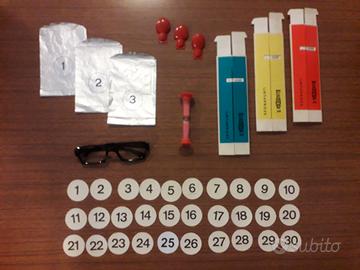 Gioco Rischiatutto della Editrice Giochi originale anni '70 (uscirono varie versioni, con domande e tabelloni diversi, questo è il "N°2 - Nuovissimo"- nuova edizione con i Superjolly") . Condizioni perfette, completo di libretto domande, tabellone con tutte le coperture, 5 tabelloni fronte/retro numerati dall' 11 al 20, occhiali di Mike, clessidra segnatempo, le buste 1-2-3, le nacchere per prenotare la risposta.. in pratica tutto l'occorrente al gioco di un conduttore e 3 concorrenti, tutto tenuto benissimo e senza parti mancanti. Vendo ad Euro 25 con ritiro diretto zona Belluno oppure spedizione tracciabile a domicilio con robusto pacco postale Postedelivery standard ad Euro 7.