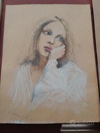Tre graziosi ritratti di donna dipinti ad acquerello e pastello su cartoncino. Firmati. Ottima qualità pittorica. Misure 24 x 14.