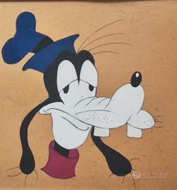 Quadro decorativo con rappresentazioni stilizzate e colorate dei celebri personaggi Disney Paperino, Pippo e Zio Paperone. Un pezzo ideale per collezionisti e appassionati di animazione classica, perfetto per arredare con un tocco di nostalgia e allegria. Cornice semplice e design lineare che valorizzano i volti iconici. Dim 72x25cm