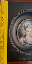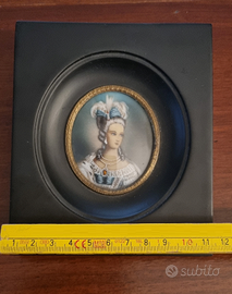 Piccolo quadretto vintage con miniatura raffigurante il ritratto di una dama in abiti d’epoca.