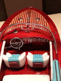 Modellino del leggendario motoscafo realizzato a mano interamente in legno e particolari in metallo. Lunghezza 53 cm.