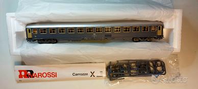 Rivarossi 3599 - FS UIC-X 1979 2a classe tetto liscio, carrelli FIAT, grigio ardesia con logo a TV (ep. IV, ambientazione fine anni '70 - inizio '80). Usata ma in ottime condizioni, aggiuntivi compatibili con la circolazione sul plastico montati (con cura), qualche segno di colla in posizione invisibile nel sottocassa. Foglio di carta velina aggiunto per facilitare inserimento ed estrazione dal polistirolo. Spedizione entro tre giorni lavorativi dall'acquisto. Transazione fra privati e formula "visto e piaciuto", nessuna garanzia e restituzioni non accettate. Le foto formano parte integrante della descrizione.