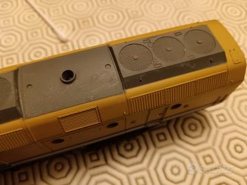 Rivarossi HO Rio Grande in condizioni discrete. La vernice non è in condizioni perfette in quanto la schiuma della scatola originale nel tempo ha intaccato la vernice su uno dei lati di entrambe i modelli; l'altra parte è in buone condizioni. manca superpila da 1,5V del dispositivo acustico. Motore e luci funzionanti