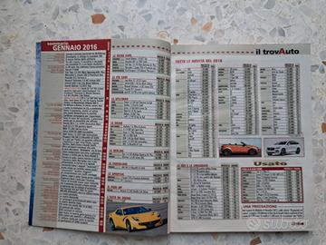 Articoli e Inchieste Editoriale: Un pezzo intitolato "Salvate il pianeta (partendo da Wolfsburg)", probabilmente riferito allo scandalo Volkswagen dell'epoca. Inchiesta: Consigli sull'acquisto di auto usate ("Usato in permuta, occhio al valore"). Speciale SUV e Crossover: Una rassegna sui modelli più popolari del momento. Prove e Novità La rivista include test e anteprime di diversi modelli, suddivisi per categoria: Utilitarie: Suzuki Baleno e Ford Fiesta. Berline: Renault Talisman e Mercedes Classe C Coupé. Sportive: Porsche 911 Carrera S e Ferrari F12tdf (definita "L'auto da sogno"). Pick-up: Nissan Navara. Guide e Rubriche Consigli di guida: Come comportarsi con neve e ghiaccio. Manutenzione: Informazioni su gomme invernali, catene e come preparare l'auto per l'inverno. Listino del nuovo: Una sezione dedicata alle quotazioni e ai prezzi di oltre 6000 modelli. Prendi nota: Dieselgate: si allarga lo scandalo VW Il nostro sito: Il nuovo listino delle utilitarie Forum: Tra alti e bassi, il Cavallino è secondo nel mondiale F1: è un buon risultato? Le novità del 2016: Le 80 auto che vedremo l’anno prossimo Auto da sogno: Ferrari F12tdf Inchiesta: Usato in permuta, occhio al valore (ma senza dimenticare lo sconto) CategoriaModelloPrezzo (€)Pagina LE MENO CARESuzuki Baleno 1.0 DICT Top16.00056 Hyundai i30 1.6 CRDi Style24.100107 LE PIÙ CAREPorsche 911 Carrera S116.88050 Audi Q7 3.0 TDI e-tron83.70058 LE UTILITARIEFord Fiesta 1.4 16V Gpl16.500112 Lancia Ypsilon 1.2 Elefantino13.300112 LE MEDIEAlfa Romeo Giulietta 1.6 JTDm27.550107 Opel Astra 1.6 CDTI Innovation25.500107 LE BERLINEFiat Tipo 1.6 16V Mjet19.90046 Renault Talisman 1.6 dCi Intens36.30052 LE FAMILIARIPeugeot 508 SW 2.0 BlueHDi42.080108 LE SPORTIVEMercedes C Coupé 250 d55.60048 IL PICK-UPNissan Navara 2.3 dCi42.00059 L'AUTO DA SOGNOFerrari F12tdf390.00040