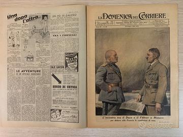 Del 23/06/1940, originale con copri-copertina, presenta in bella mostra l'articolo riguardante l'incontro fra il duce ed il fuhrer per dettare alla Francia le condizioni per la resa. Con 2 splendide copertine di Achille Beltrame. In ottime condizioni, puo' presentare eventuali segni dovuti al passare del tempo.