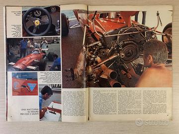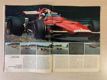 Dettagliato articolo riguardante il mondo della Formula 1 nei primi anni 70, con numerose fotografie a colori delle Ferrari di allora e del circuito di Monza.