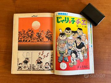 RIVISTA GIAPPONESE WEEKLY MANGA ACTION KAZUO KOIKE LUPIN III MONKEY PUNCH 1979 Originale, molto raro anche in Giappone! Splendido esemplare della rivista cult giapponese Weekly Action (Manga Action) datata 14 giugno 1979 (昭和54年). Un vero pezzo di storia del fumetto nipponico, ideale per chi colleziona le prime apparizioni di serie leggendarie. Caratteristiche principali: Titolo: Weekly Action (週刊漫画アクション) Data di pubblicazione: 14 Giugno 1979 Serie in evidenza: * Lupin III (Shin Lupin III) di Monkey Punch (Capitolo 95, "Gas Kyu-yaku") Jarinko Chie di Etsumi Haruki (con pagine a colori) Kei no Seishun di Kazuo Koike e Goseki Kojima Hakata-kko Junjo di Hosei Hasegawa Contenuti extra: Include illustrazioni a colori, pubblicità dell'epoca (tra cui una curiosa pagina dedicata a Superman) e lo stile grafico inconfondibile degli anni '70. Condizioni come in foto Disponibili anche molti altri articoli di Lupin III e Monkey Punch originali giapponesi nelle mie altre inserzioni Per qualsiasi informazione o ulteriore foto non esitate a contattarmi!!
