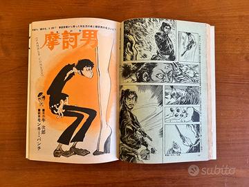 RIVISTA GIAPPONESE WEEKLY MANGA GORAKU LEIJI MATSUMOTO SEINEN MONKEY PUNCH 1973 Incredibile numero d'epoca della rivista Weekly Manga Goraku, datato 8 febbraio 1973. Questa rivista è una pietra miliare per i collezionisti di manga classici, poiché ospita nello stesso numero i padri fondatori dell'animazione giapponese che ha dominato le TV italiane negli anni '80. I grandi maestri contenuti in questo numero: Leiji Matsumoto: Il leggendario creatore di Capitan Harlock e Galaxy Express 999. Qui è presente con la serie Seiban Jin Den (聖凡人伝). I suoi lavori su rivista di questo periodo sono rarissimi e molto ricercati per il design unico delle sue "donne Matsumoto". Monkey Punch: Il papà di Lupin III firma qui i disegni per Nisegaku Mushuku (su testi di Jiro Gyū). Un'occasione rara per vedere il suo tratto applicato a storie diverse dal ladro gentiluomo. Kazuo Koike: Lo sceneggiatore di Lone Wolf and Cub scrive qui Hōmuri Nagashimon (disegnato da Ken Tsukikage). Masaaki Sato: Maestro del genere "hard-boiled" e noir, presente con Kenju Tai Kenju. Dettagli Tecnici: Rivista: Weekly Manga Goraku (週刊漫画ゴラク - Nihon Bungeisha) Data di uscita: 8 Febbraio 1973 (No. 198) Contenuto: Un mix esplosivo di avventura, noir e lo stile inconfondibile del maestro Matsumoto. Stato: vedi foto Perché acquistarlo: Questo numero è un "must-have" assoluto per i fan di Leiji Matsumoto. È rarissimo trovare riviste originali dei primi anni '70 che contengano i suoi lavori prima del boom mondiale di Harlock. È un documento storico che testimonia il periodo di massima creatività dei mangaka che hanno costruito l'immaginario collettivo moderno. Per qualsiasi informazione non esitate a contattarmi