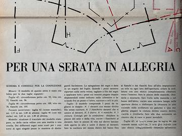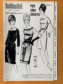 Cartamodello per elegante abito da sera anni '60 (taglie 42/46) con tutte le indicazioni dettagliate per una corretta esecuzione.