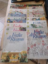 N.ro 60 riviste VOGLIA DI RICAMO (dal n.ro 1 al 60) con schede pratiche in due raccoglitori ad anelli e con 53 decalcabili a caldo integri