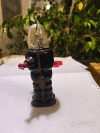 modello in latta con meccanismo a carica inerziale, oltre che a muovere le ruotine sotto i piedi, gira anche il "radar" all'interno della "testa", buonissim condizioni, un po arrugginito in alcune parti, vedere foto. in offerta ad eur 40. prego astenersi affaristi e postulanti