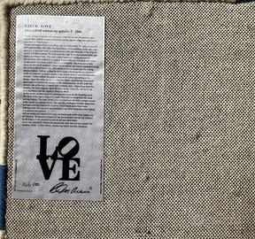 Robert Indiana LOVE Edizione limitata numerata e firmata a retro Tecnica: tappeto intrecciato a mano Dimensioni: cm 40x40 Davvero bello e rappresentativo del maestro Robert Indiana Spedizione tracciata con corriere Disponibili litografie di Renato Guttuso, De Kooning, Antoni Tapies, Escher, Sebastiao Salgado, Marc Chagall, Salvador Dali, Christo, Pablo Picasso, Mario Schifano …