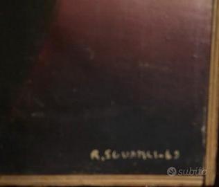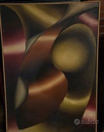 Roberto Sguanci, un pittore e grafico fiorentino nato nel 1948, ha iniziato la sua formazione artistica a Firenze, frequentando la Scuola d'Arte fino al 1968. L'anno 1969, presente nell'opera, rappresenta quindi un momento cruciale all'inizio della sua carriera, subito dopo la fine degli studi e prima di dedicarsi alla grafica pubblicitaria (fino al 1973). Sebbene sia noto per la tecnica dell'"olio graffiato" (incisione su pasta di legno) appresa negli anni '80 dal maestro Beppe Serafini, questa sua opera giovanile del '69 mostra una chiara adesione a un linguaggio astratto-dinamico. Il dipinto è un esempio di astrattismo geometrico e dinamico, che richiama fortemente l'estetica del Futurismo e dell'Aeropittura. L'opera è costruita su una serie di linee curve e volumi plastici che si intersecano, creando un senso di rotazione e profondità. La forma sferica centrale sembra essere il perno attorno al quale si sviluppano i "nastri" di colore. La scelta dei colori ocra, bruni e tocchi di bordeaux unita a sfumature morbide, conferisce alle forme un aspetto quasi metallico o tridimensionale, tipico delle ricerche sulla "forza della curva". In questo periodo (1969), l'opera testimonia la sperimentazione di Sguanci sulle forme pure e sul movimento, prima del suo passaggio a uno stile più figurativo e materico negli anni successivi. Dimensione: 50x70 Tecnica: olio su tela Periodo realizzazione: 1969 Firma in basso a destra.