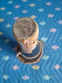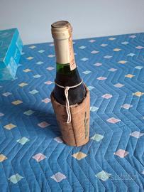 vino da collezione Robola di Cefalonia proveniente dall'isola di Cefalonia. bottiglia con sacchetto di juta e ciondolo metallico.