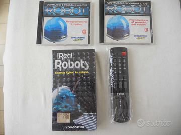 Robot De Agostini in parte gia montato completo di tutti gli altri componenti per completarlo. Tutte le schede sono gia montate basta seguire le istruzioni che sono raggruppate in due raccoglitori. Comandabile e programmabile dal computer o con telecomando. Prezzo 160euro spedito
