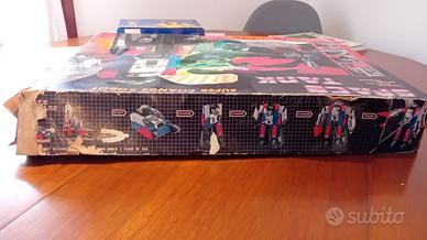 Space Tank Super Change Robot Transformer Made in Taiwan I pezzi sembrano tutti presenti ,vedi foto Funziona a Batteria - 2 stilo Funzionante, le ruote girano e la luce della testa si accende Un braccio con il meccanismo da sistemare Coperchio scatola rovinato Polistirolo integro Non ho provato a montarlo Spedisco