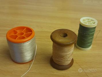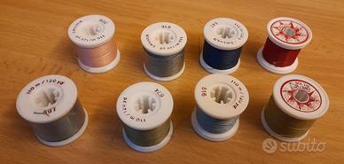 18 rocchetti di filo per cucire vintage di vari brand storici e materiali di alta qualità, con una varia palette di colori: