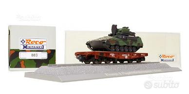 Articoli vari della Roco Minitanks in scala HO 1:87 (carri armati con e senza carro ferroviario, camion, elicotteri, etc..).