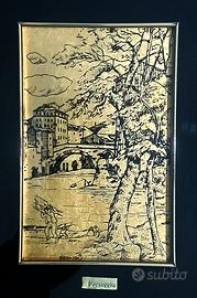 Bellissima e rarissima realizzazione su foglia oro 22kt (vedi foto con marchio punzone 22kt) tratta dalle opere di E. Roescer Franz "Roma sparita".