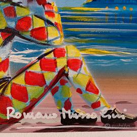 BELLISSIMO QUADRO OLIO SU TELA DI ROMANO MUSSOLINI ( FIGLIO DI BENETO MUSSOLINI IL DUCE ) .QUADRO CERTIFICATO E FIRMATO DA ROMANO MUSSOLINI .