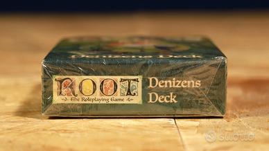 Confezione sigillata di "Root: The Roleplay Game Denizens Deck". Supplemento per il gioco di ruolo di Root. Edizione in lingua inglese pubblicata da Magpie Games. Chiuso e mai utilizzato.