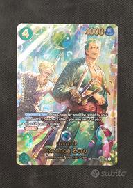 One Piece The Azure Sea's Seven Roronoa Zoro SP Alt Art PRB02-006 NM english Sbustata giusto 2 giorni fà la carta è perfetta nessun difetto e centratura ok, sicuramente un voto pari al 10. Per qualsiasi info non esitate a contattarmi vi posso fornire altre foto nello specifico.