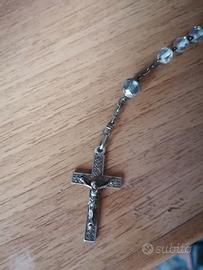 2 rosari antichi, uno in argento e perle in vetro trasparente, l altro in ottone e perle azzurre.