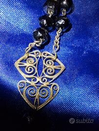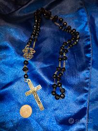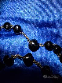 Antico rosario spagnolo con grani irregolari di vetro sfaccettato (circa 8 mm). Crociera particolare, crocifisso probabilmente sostituito posteriormente (1920 circa).