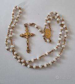 Bellissimo Rosario cristiano Made in Italy. Misura collana 43 cm di colore oro, perle in ceramica . Buone condizioni generali.