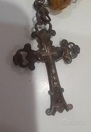 lo fatto vedere antiquariato. non pulito non lavato. la proprietaria di questo rosario è finita negli anni 1986 all'età di 100 anni Questo era il suo. da notare che manca Gesù sulla croce.