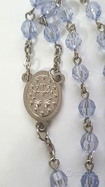 Rosario della Vergine di Lourdes con grani azzurro trasparente.