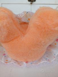 Viso , mani in plastica fluorescenti , corpo in peluche colore albicocca , antenne in plastica rossa