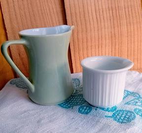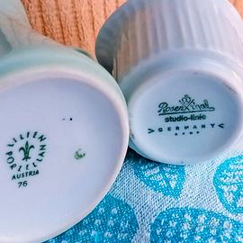 SET 2 lattiere / creamers - // Rosenthal Germany Creamer Serie "Variation" Designer Tapio Wirkkala cm 5 altezza cm 6.5 // Lilien Porzellan Austria . Creamer verde menta serie "Daisy" anni '60 Larghezza cm 10 altezza cm 8 // Condizioni ottime. Come nuovi, Vedi foto