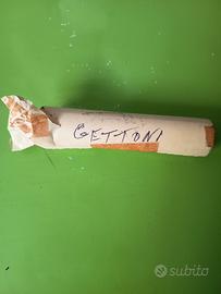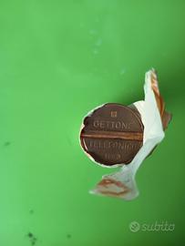 Rotolo originale da 50 gettoni telefonici URMET/SIP, confezionato negli anni ’70 dalla Coop Produzione Lavoro Bologna, con timbro visibile e carta originale