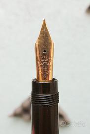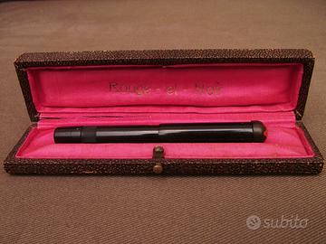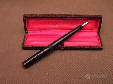 Bellissima Rouge et Noir N° 4, revisionata con sostituzione del sughero di tenuta posteriore. Pennino originale in oro 14 Carat, credo sia un F. Ottime condizioni vista l'età sia della penna che dell'astuccio (solo leggero sfilacciamento della stoffa interna, visibile in foto 2 e 3) in fondo sono oggetti con oltre un secolo sul groppone. Rarissima sia la penna che l'astuccio originale, poi trovarli insieme è quasi impossibile. Prezzo 1250 euro non trattabili. Se siete interessati ad altre penne stilografiche e/o biro date un occhiata agli altri miei annunci. Il primo modello commercializzato fu la Rouge et Noir nel 1909. Un po' di storia di come è diventata in segiuito MontBlanc: Nel 1910 la penna venne ristilizzata e migliorata e venne lanciato sul mercato un secondo modello con la testa del cappuccio bianca anziché rossa. Secondo quanto riportato dalla figlia di Voss pare che il nome della nuova penna sia stato ideato da Carl Shalk durante una partita a carte; questi osservandola disse qualcosa come: Perché non chiamarla Montblanc? Dopo tutto anche quello è nero in basso e bianco in cima ed è il più grande fra i suoi simili. Da allora il nome Montblanc venne registrato ed usato dall'azienda per promuovere i propri prodotti, preso come simbolo di una qualità superiore a quella di tutti gli altri.