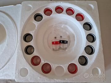 Vendo divertentissima Roulette Alcolica per animare feste e serate tra amici. L'oggetto è nuovo, mai utilizzato e ancora nella sua confezione originale. Il set è completo di tutto: 1 Ruota Roulette girevole (diametro circa 30 cm) 16 Bicchierini da shot in vetro, numerati e colorati (rossi e neri) 2 Palline metalliche incluse Perfetto come regalo originale o per dare un tocco di divertimento in più ai tuoi party! ✅ Stato: Nuovo / Mai usato 📦 Confezione: Originale integra