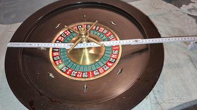 Roulette in legno anni 80' BI-ASS professionale, perfettamente funzionante ma come si vede dalle foto il legno presenta alcune sbucciature. Completa di panno verde , sabot DalNegro con carte , rastrello e 800 fiches madreperla.