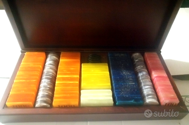 Roulette in legno anni 80' professionale, marca BI-ASS Perfettamente funzionante. Scatola Fiches in radica con fondo in panno verde e Fiches in Madreperla in Lire. Compreso panno verde Diametro: 35 Cm