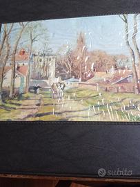 Roulette vintage ,gioco da tavolo, in valigetta di plastica con la riproduzione di un quadro di C.Pissarro"Entrata del villaggio di Voisins" sul coperchio.Include ruota da roulette,fiches colorate ,tappeto verde ,il rastrello del croupier e naturalmente due palline.